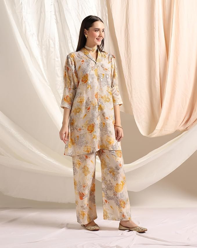 Cotton Blend Co-Ord Set for Women | Co-Ord Set for Women Stylish | Kurta Set for Women | Pajama Set | Ethnic Co-Ord Set for Women | 3/4 Sleeve Women’s Co-Ord Set